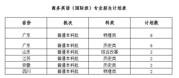 本项目通过普通高考招生,本科录取专业为云顶国际vip.888商务英语(国际班),总计划20人。